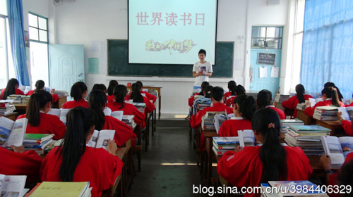 2014年4月23日是“世界读书日”,由“青爱小屋”的赵洁兴、邓家明、李艳松、彭武林、朱玺五位专责教师组织学生在全校开展了“好读书,读书好,读好书”的读书活动。本次活动旨在激发全校学生读书的兴趣,营造浓厚的读书氛围,养成良好的读书习惯,提高审美修养和人文底蕴。